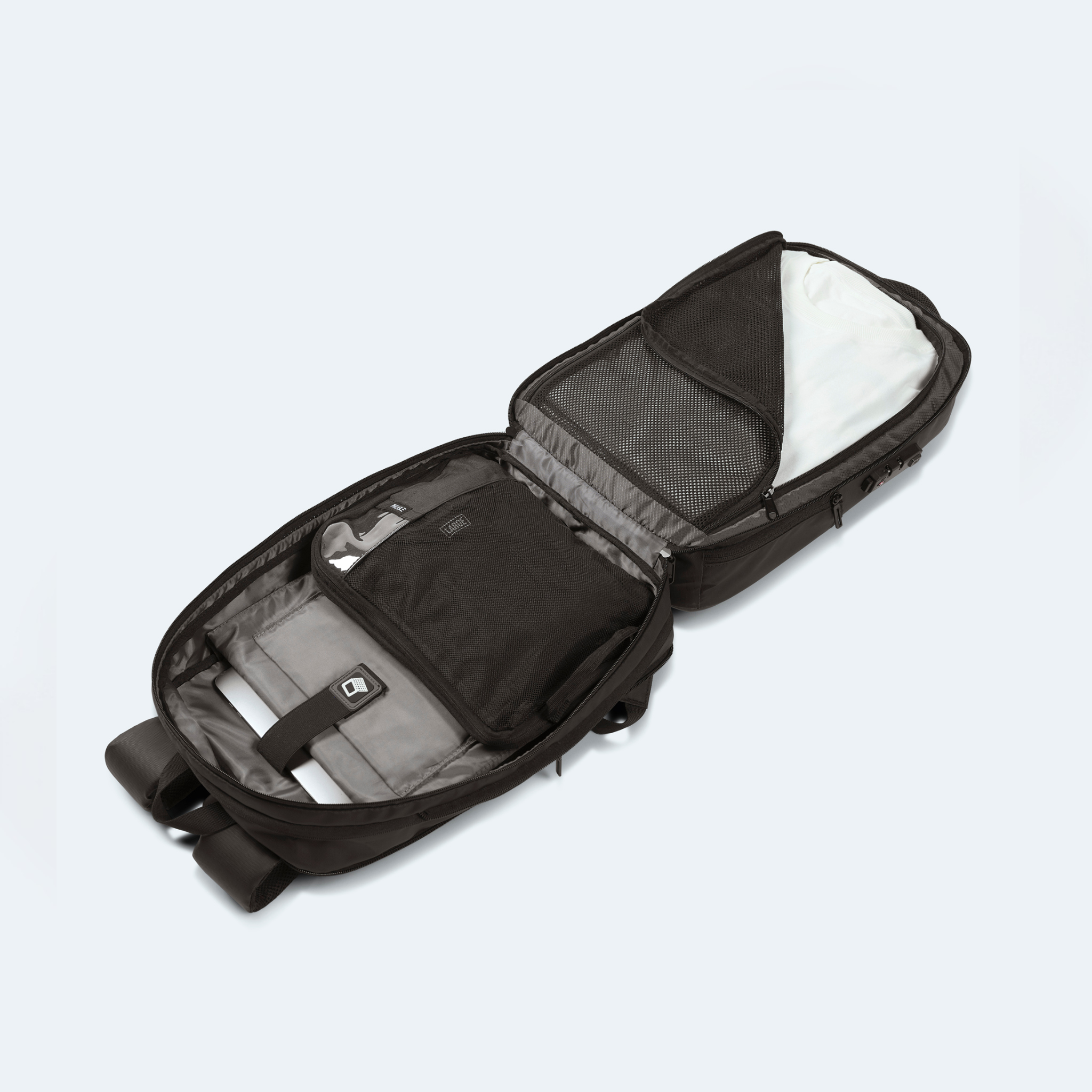 C’est grâce à une large capacité ajustable de 20 à 35 litres, associée à 9 compartiments compacts, que notre sac à dos vous permettra d’emporter tout ce dont vous aurez besoin sans aucune restriction. Vous pourrez aisément y ranger 3 t-shirts, 3 chemises, 3 pantalons, 3 slips, 3 paires de chaussettes, une trousse de toilette, 1 ordinateur, 1 iPad, 1 livre ainsi que vos essentiels personnels. Le tout, de manière organisée.